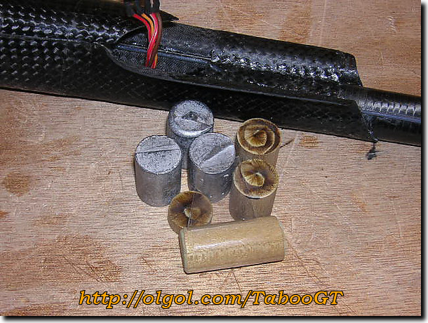 This is what you take with you to the field in your flight box. Obviously, when only one slug is needed you put two blanks behind and in front of it. If two slugs are needed, put one blank in the middle. The ballast must be always centered around the CG of the plane.