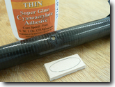 Pour thin CA into the hole to saturate the balsa plug and glue it to the tailboom. Do not overdo this, it is very easy to get CA running out of the rear or the front end of the tailboom. |