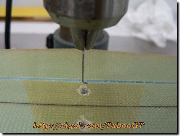 Using a small steel wire with an L-bend on one end, set the drill press to a low