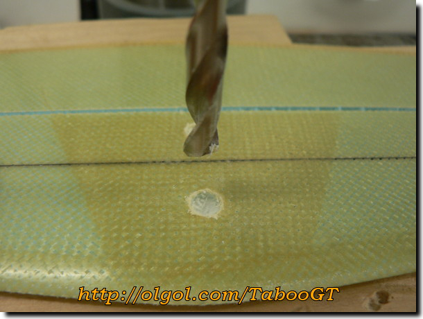 14. Using a large enough drill bit, make a clean sink for the bolt head in the hardened epoxy-microballoon hardpoint. The indentation must be only as deep as the bolt head. Do not weaken the hardpoint more than necessary.