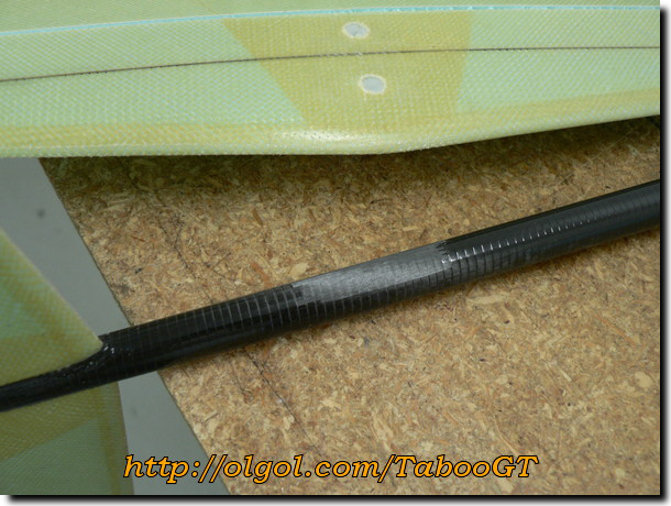 16. Attach the stab mount to the stab. Scape the surface of the tailboom where the stab mount will be glued.