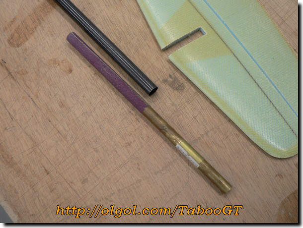 over it. The dowel must be slightly smaller than the tailboom diameter. A 5/16"