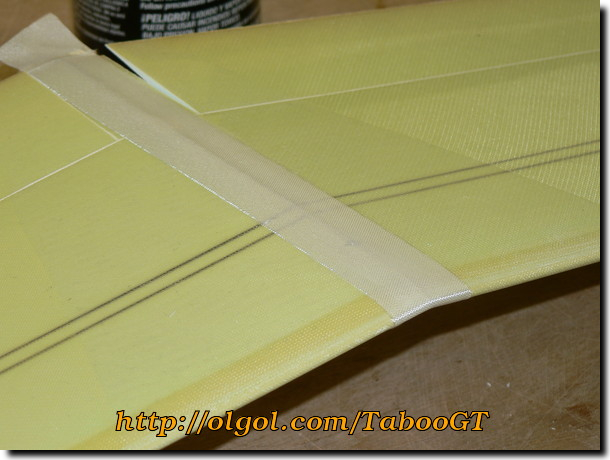 22. Either wrap one continuous piece of fiberglass around the leading edge, or (easier) use two pieces and overlap them at the leading edge (gives extra strength near the leading edge for the attachment pins).