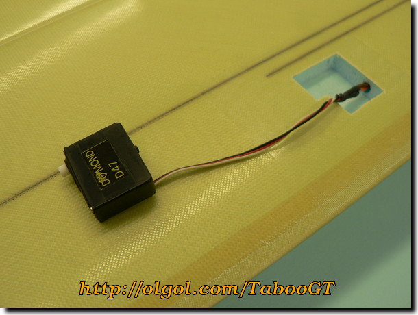 43. Insert the extension wires through the servo channel.
