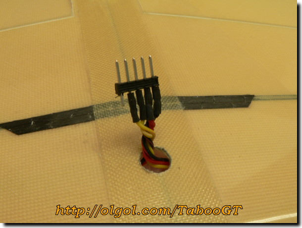 6. Finish the wing connector as usual. The free pin here is reserved for the in-wing antenna (72 Mgz), not needed for 2.4 radio.