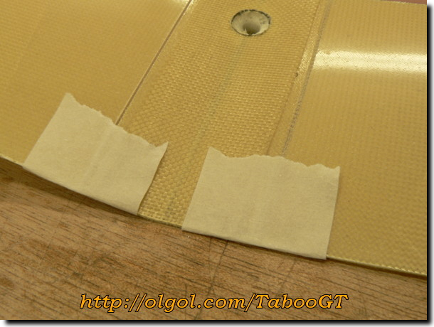 9. Fix the ailerons to the center of the wing with masking tape while installing the pushrods.