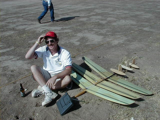 My efforts on Sunday (using Tom Kiesling and Joe Wurts as my timers/spotters) improved my standing but still left me on the 3rd place going into the fly-offs, about 130 points behind Joe's perfect score. My less then perfect flying in the fly-offs and a couple of poor decisions moved me even farther down the table and I finished on the 4th place, behind Joe, Craig Greening, and Phil Barnes. I am on the far right on the picture below. ![]() Joe Wurts was unreachable again with nearly perfect scores throughout the contest. His throw-out round was 987 points! If not for a very small (6 points) dent in Joe's score made by Craig Greening in the fly-offs, Joe would have finished with the perfect 12000 points. He gave us another lesson of how a thermal contest should be flown. I was quite happy with my airplane performance during the contest. Many people at the field mentioned that my Taboo XL is probably the highest launching plane there. That made me quite proud of my efforts (although did not help me to avoid sink in a couple of rounds). The airplane launched great, cruised very well and climbed in the thermals like crazy. All in all, I think Taboo XL is a successful design so far. Besides me, two other people on the field had Taboo XL in their arsenal. Tom Kiesling had an early prototype model and was in general satisfied with its performance. He used Taboo XL in half of the rounds, alternating it with his own design model based on the same Mark Drela's airfoils and Logic fuselage. The picture below shows Tom's Taboo XL (second from left) among his and Phil Barnes's models. ![]() The other pilot who flew Taboo XL at IHLGF was Joe Wurts. He successfully crashed the model that I sent him prior to the contest - only 2 days before the contest and before I could even see him fly it. I had to twist his arm and force him to take one of my backup models and fly it in the contest, just so that I could claim that Joe had Taboo XL and flew it at IHLGF :-). He kept Taboo XL as a backup model throughout the contest, and successfully flew it in one of the rounds on Sunday to a 1000 point score. Here, Joe is a happy guy who just got the 1-st place trophy for the 8-th time. Taboo XL is in the middle among his Encores. ![]()