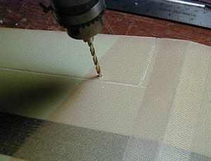 Drill the holes for the aileron control horns using a 1/8" drill bit. Do not