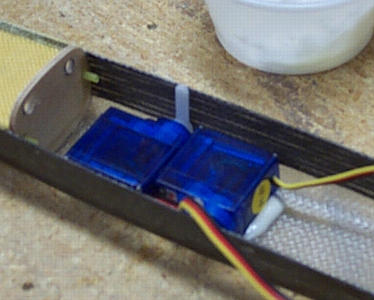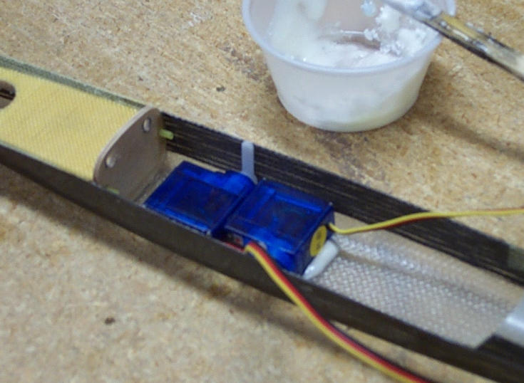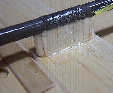 17. Cut a small strip of 3oz fiberglass, lightly spray it