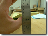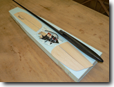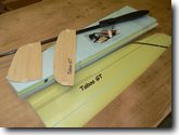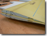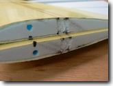 This is a good time to check the wing dihedral - 170-190mm from the table with one panel flat on the table. If a small correction is required, use a sanding block to adjust the bevel angle of the wing roots. Very little effort is needed to produce large changes at the wing tip, so be careful not to overcorrect. |