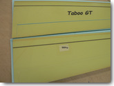 Tape the two wing halves on the bottom. Notice the marks showing the position of the servo wire channels. This is critical to be able to properly position the wire exit hole later. |