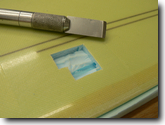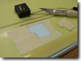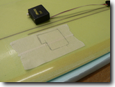 Apply masking tape to the skin where the servo pocket will be cut. Trace the servo outline with a pencil. Allow for some space for the servo arm. |