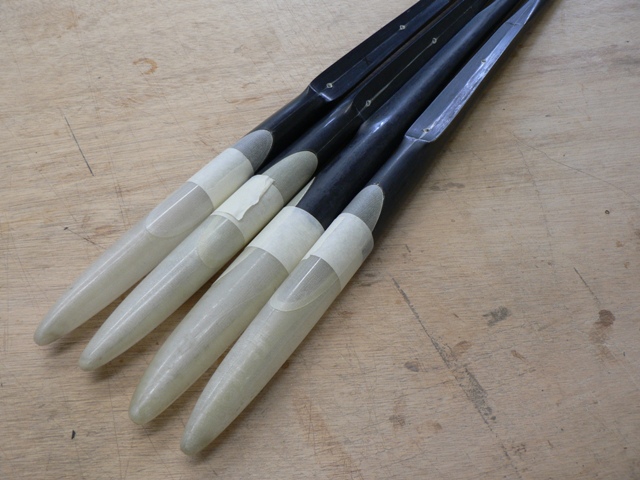 The tails are made of blue foam with 1.0 oz kevlar skins for lightness and durability.