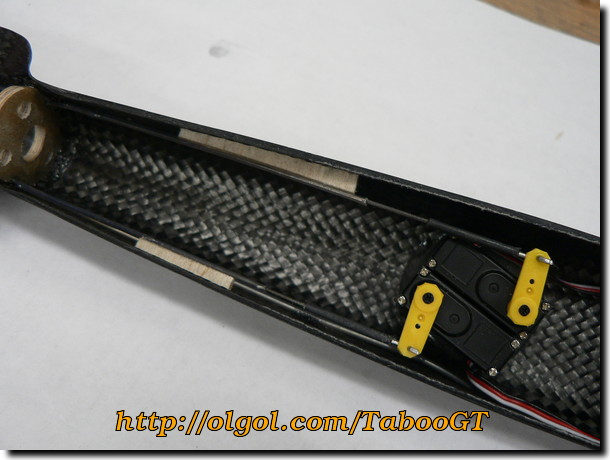 The front ends are done. Pushrod housings are trimmed to the right length, and attached to supporting balsa webs. Make balsa webs from 1/16 balsa. The pushrod housing must be well supported to avoid buckling under compression loads. Small gaps are OK as shown on the picture.