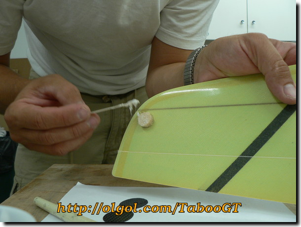 130. Remove the epoxy that oozed out of the hole to minimize the amount of required cleaning and sanding later.