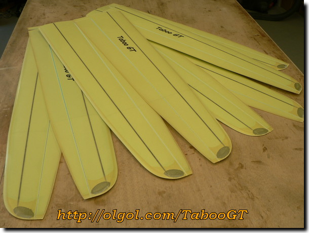 As of July 2009 wing tips are reinforced with carbon patches for easier throwing peg or blade installation. Spars are made form flat caron rod instead of round rods as shown on the pictures elsewhere in this build guide.