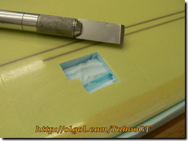 7. Use a wide spade knife to carve the foam out of the pocket.
