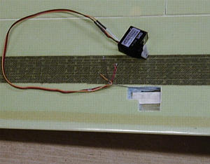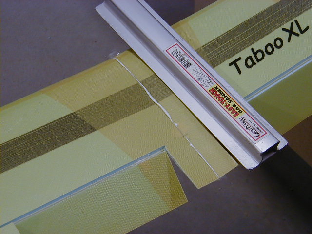 Prepare 2 strips of fiberglass about 40mm wide (kevlar is shown on the