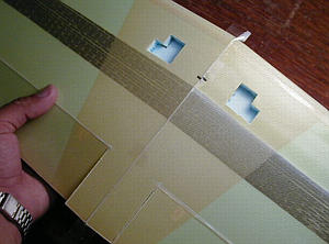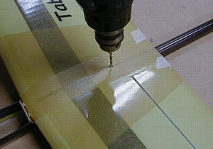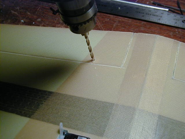 Drill the holes for the aileron control horns using a 1/8" drill bit. Do not