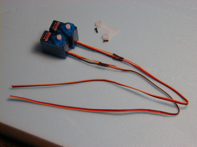 Prepare the wing servos by cutting off the servo leads and soldering the supplied
