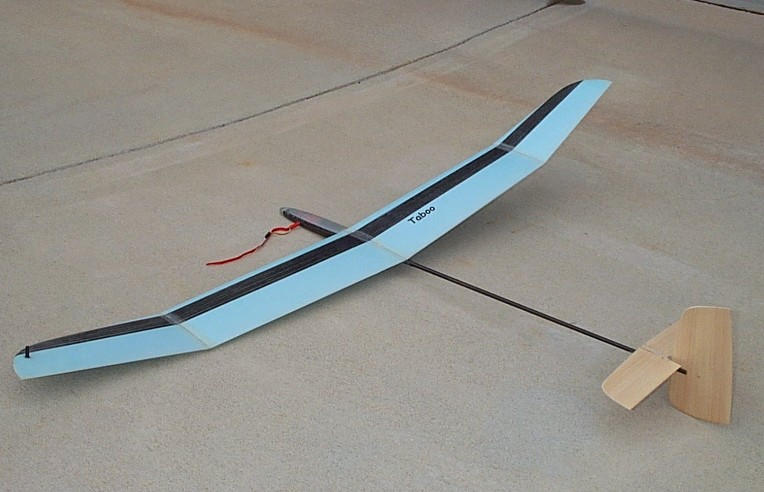 Taboo is a high performance discus launch glider designed for competitive pilots with the goal of winning contests. At the same time Taboo is a very stable plane that is very easy to fly and does not require extraodinary abilities to achieve great results. Simply put, it is a fun plane to have. Taboo was designed and refined through several design iterations during the winter of 2001. Its first contest apperance was at the BASS hand launch classic in Baltimore in early May, 2001. I took 3rd place overall at that contest due to some stupid mistakes (like landing out of field 3 times in one round). The plane showed a great potential but also indicated that some structural improvements were required. Very high winds and large amounts of adrenaline in my blood put very high loads on the structure, much beyond anything that the plane experienced during the testing and practice. The spar was not strong enough for full power launches in high winds. Immediately after the BASS contest I increased the spar size 2 times and reduced the polyhedral angles to reduce the stresses due to the launch forces. This was sufficient to keep the wing from breaking during the high power launches and the plane design has not changed since that modification. My next contest appearence, and my biggest success so far, was the largest contest in the USA and the 'de facto' world championhsip - International Hand Launch Glider Festival in Poway, CA. It is a great event with the strongest pilots in attendance. For the last 4 (or is it 5?) years the contest is won by that guy named "Joe" (Wurts). As long as I remember reading in the magazines about this event, Joe has always had some new toys for this contest. A couple years ago it was Maple Leaf planes with his special airfoil. This year it was a new super-duper 6 servo plane from Brian Buass. First time we heard about this super plane on RCSE was about 2 weeks before the contest. If that was not enough to scare the competition, when we actualy came to the field we learned that the newest trick was to use piezo gyros for stabilizing the discus launch - almost all California pilots had them in their planes!.. Talk about unfair advantage! Well, to make the long story short, Taboo performed great in California conditions and I took 2nd place with only 8 points below Joe. I never felt at a disatvantage because of the low plane performance or low launch height. Had I not have a battery failure in one of the rounds on the second day of competition, I probably would have had a very good chance of dethroning the king of HLG! Taboo also did very well for me at the Mid-South championship in Hunstville, Alabama where I took 1st place with a very strong lead over Paul Siegel and Bruce Davidson. I flew a little worse at the Nationals where I was 3rd, this time below Bruce Davidson and Paul Siegel. That's it for the competition history of my Taboo planes, but I am sure a few other people have flown their Taboos in competitions too. I hope there will be more of them flying around the country...